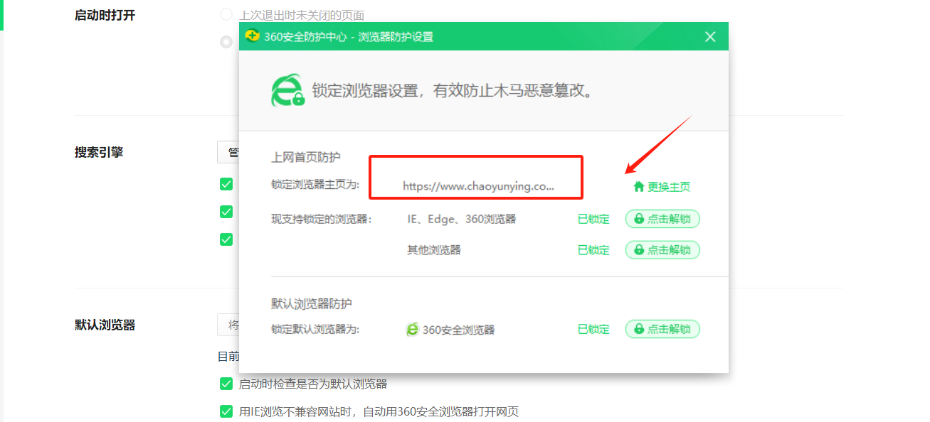 - 找到“启动时打开” 》选择“修改主页” 》“更换主页” 》粘贴刚才复制的链接,点击添加即可;