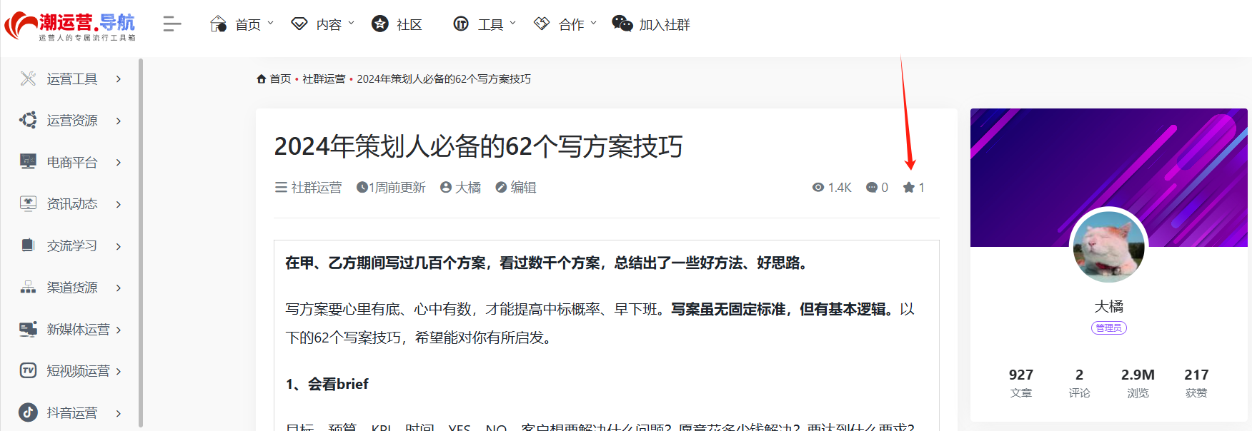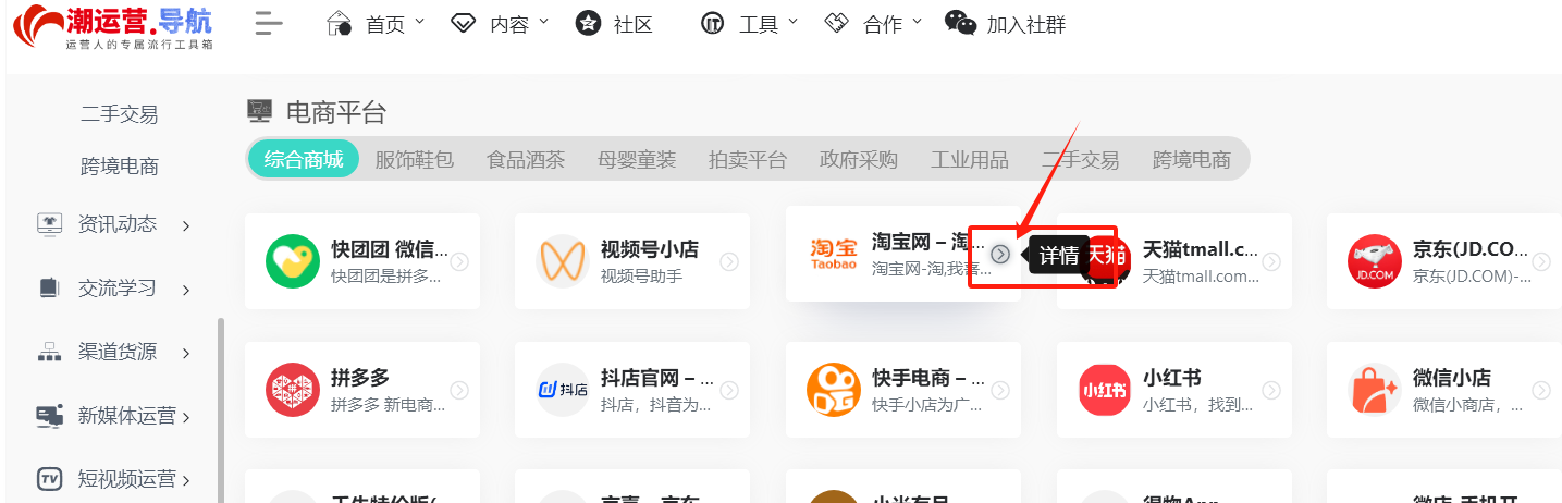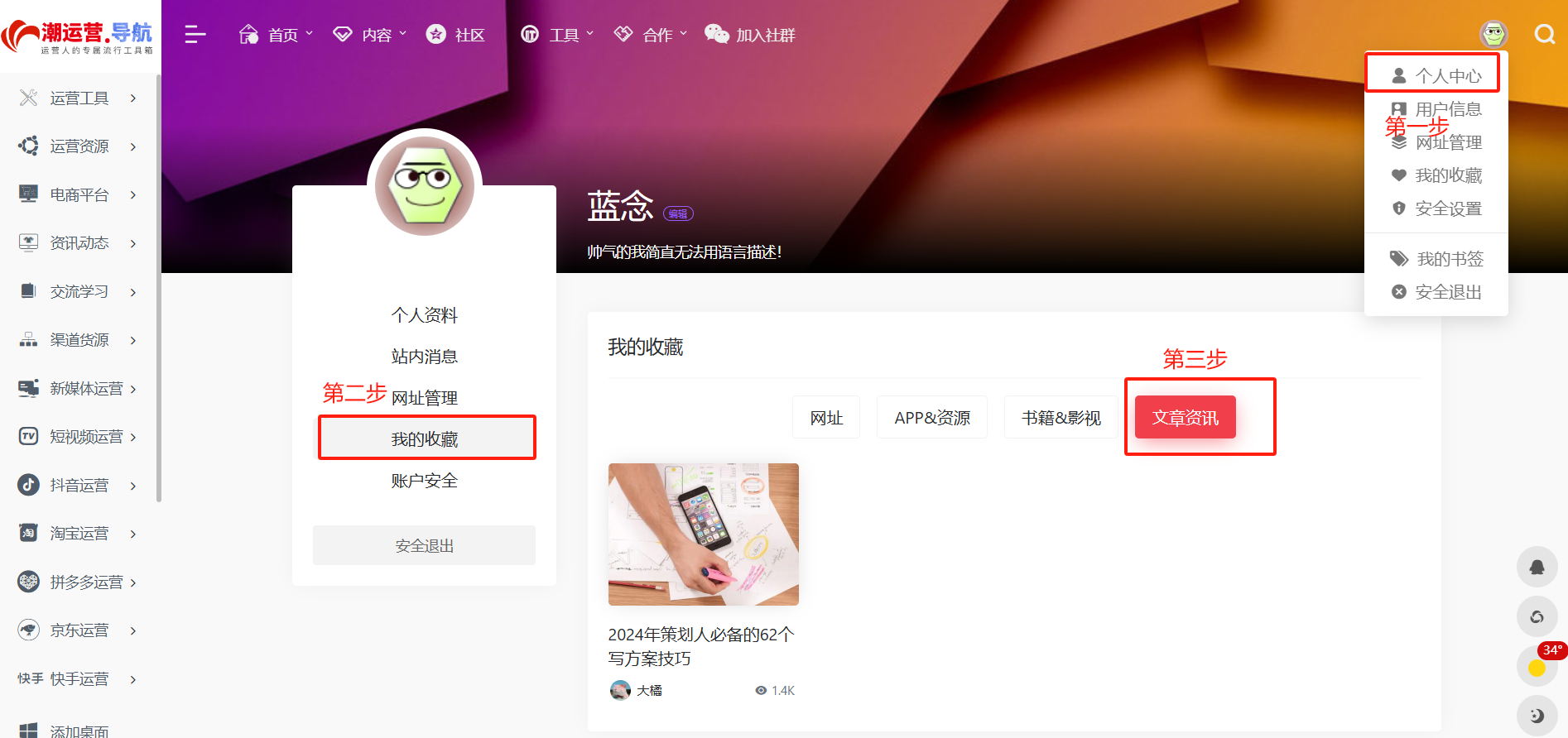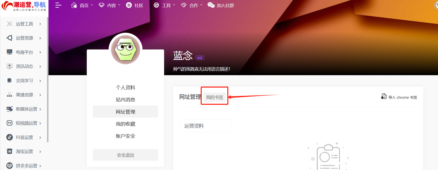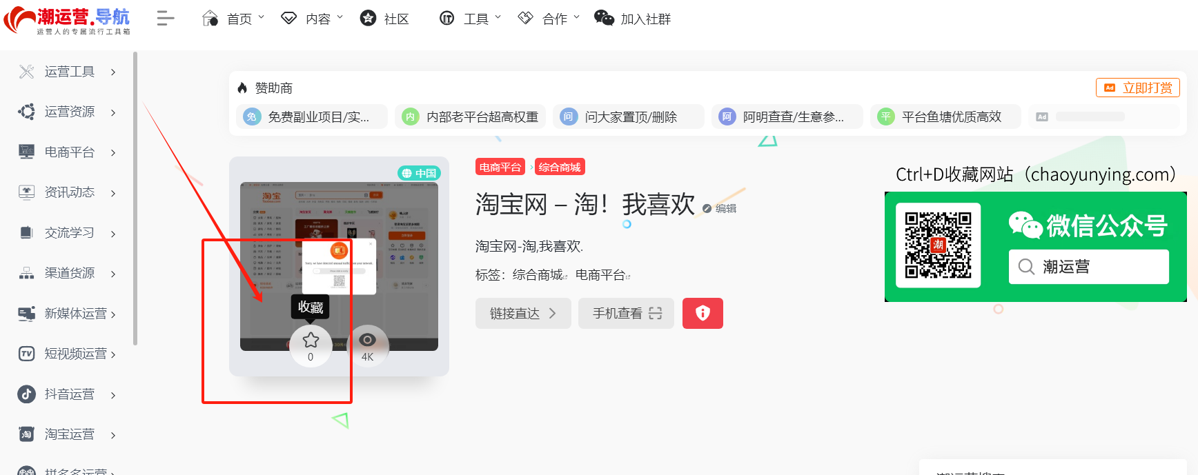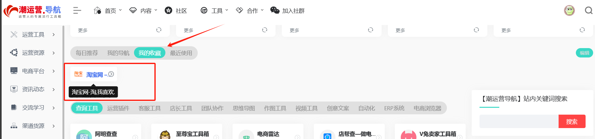 在 潮运营 的首页,就可以看到你收藏的网站。
