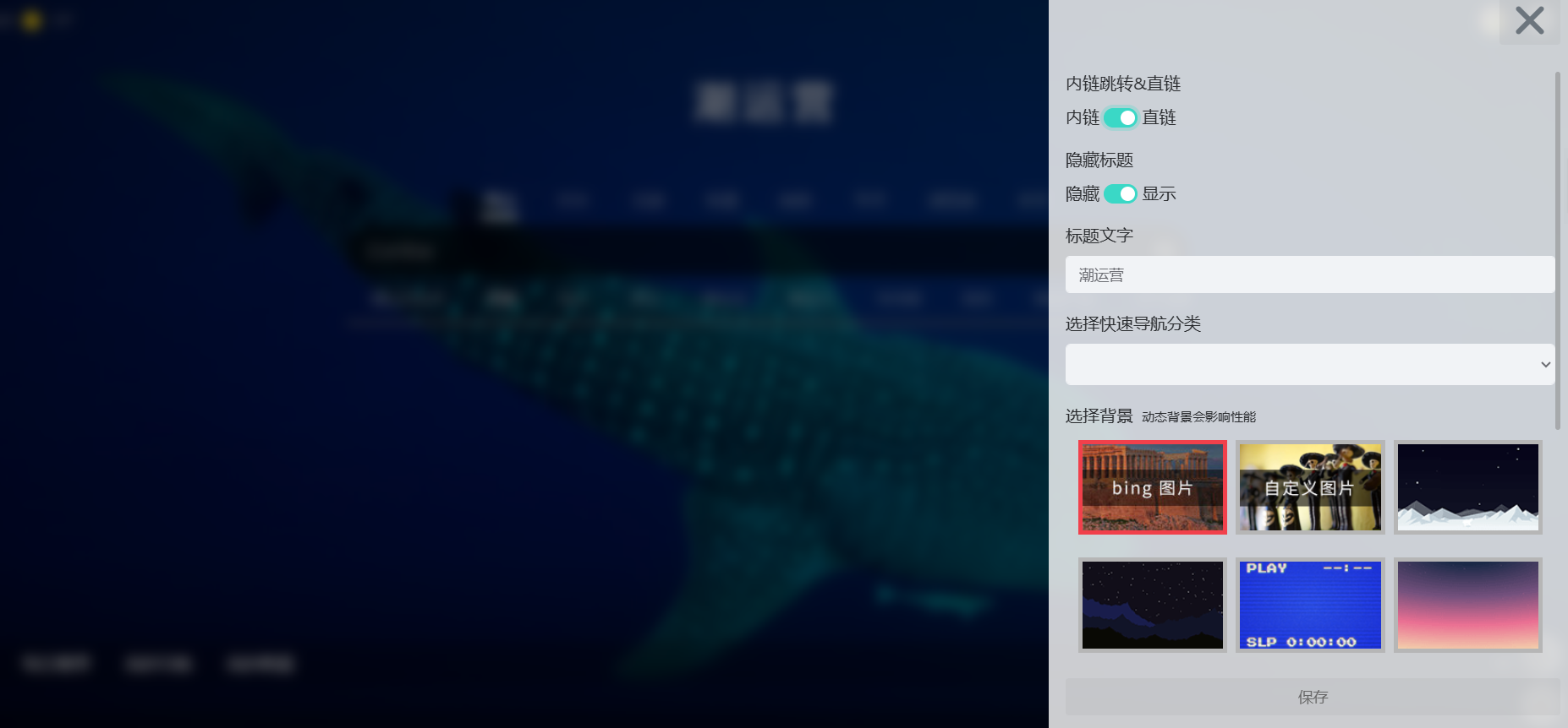 你可以在里面设置网址的跳转形式,导航的标题文字、显隐情况以及背景壁纸等。