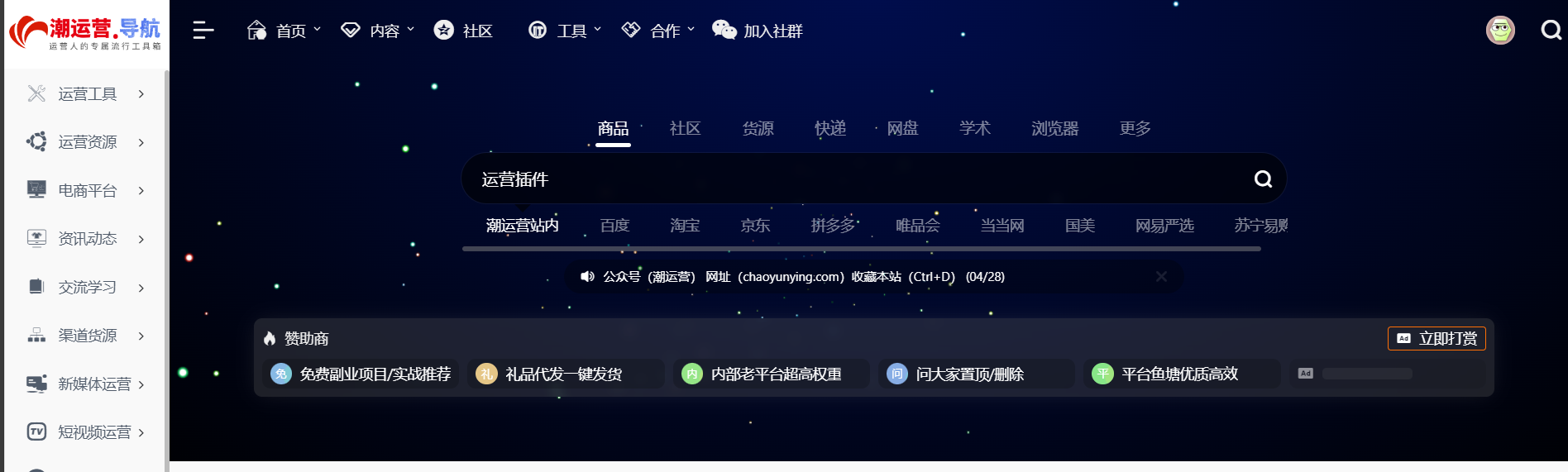 - 在首页按 Ctrl + D 收藏本站,或直接按住logo拖到收藏夹中,方便下次访问 【潮运营】 导航