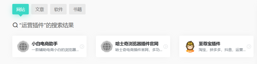 在网站首页的顶部,输入关键词敲回车键,以关键词“运营插件”为例: