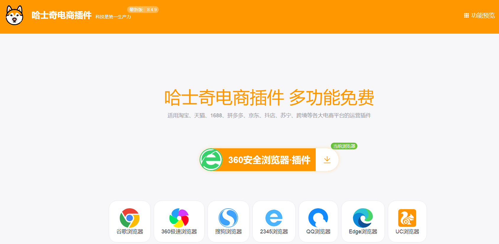 哈士奇电商插件官网,多功能免费,老电商人熟悉的一款浏览器插件,适用淘宝、天猫、1688、拼多多、京东、抖店、苏宁、跨境等各大电商平台的运营插件